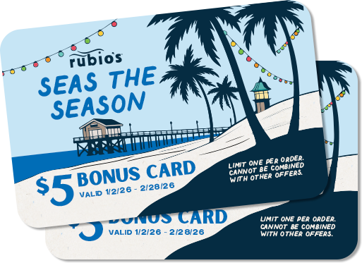 Rubio's - Get a $5 bonus coupon when you order $50 or more in gift cards online.