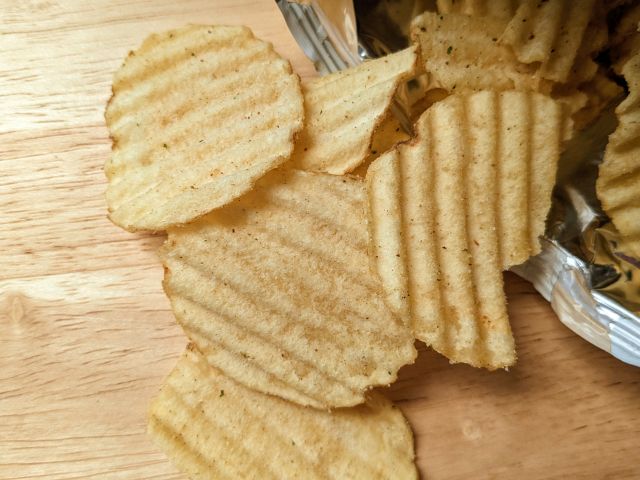 As far as texture goes, these Wavy Potato Chips offer the same crispy feel as Lay's Wavy chips. It's not too oily with a light crunch, while preserving a fried potato flavor.
